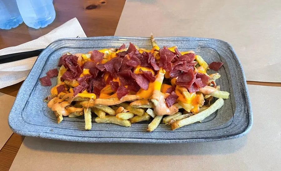 - تشيزي ستايل فرايز بسعر 25 ريال سعودي. بطاطس سنشري الخاصة تقطع طازجة في المطعم وبصل مكرمل ولحم مقدد وسنشري صوص.