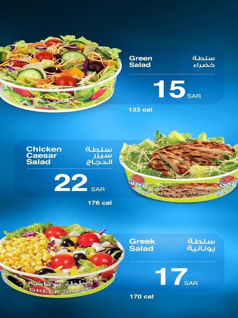 - سعر سلطة خضراء هو 15 ريال سعودي.