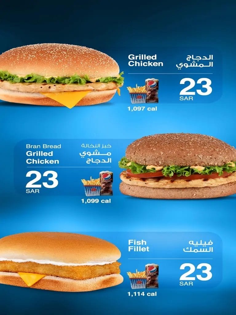 - سعر برجر الدجاج هو 16 ريال سعودي.