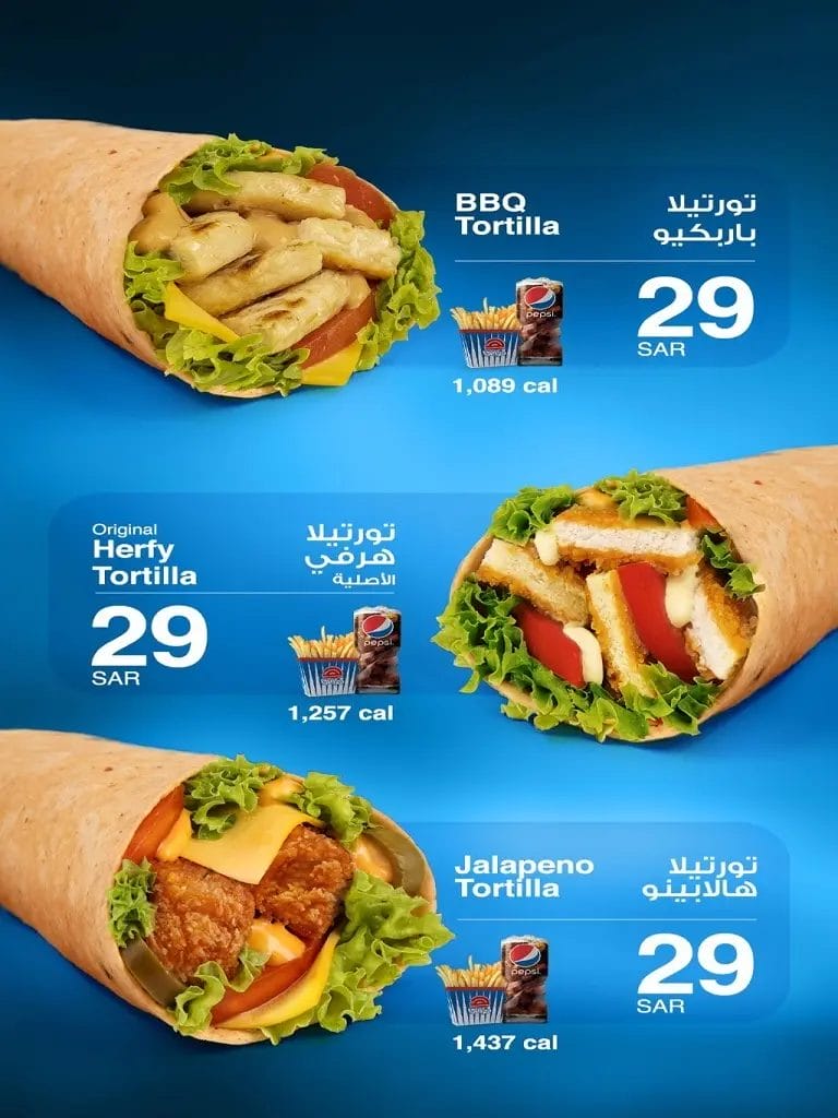 - أفضل الوجبات: برجر هرفي – المدبل – ميلك شيك هرفي.
