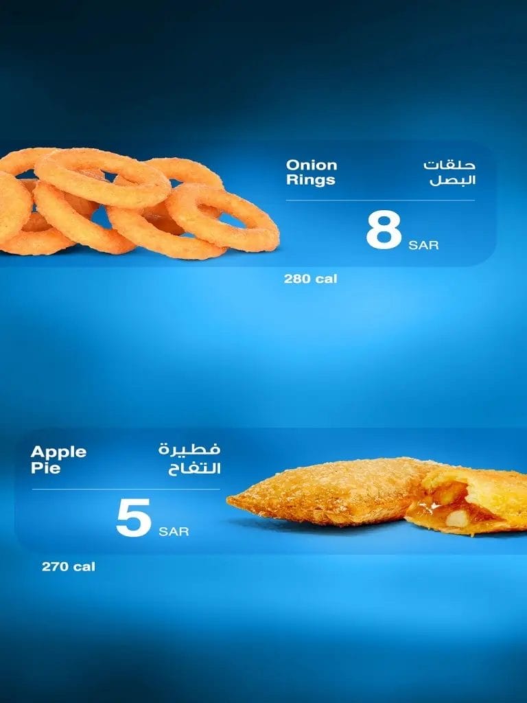 - سعر حلقات البصل المقرمش هو 8 ريال سعودي.