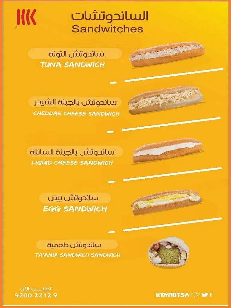 منيو الساندوتش