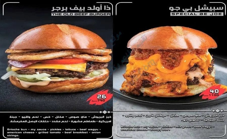 - سبيشل بي جو برجر يقدم لك 1100 سعرة حرارية بسعر 40 ريال سعودي. يتكون من خبز البريوش – ماي صوص – مخلل – ميكس قرين – لحم واقيو – جبنة أمريكية – سلوبي – جو.