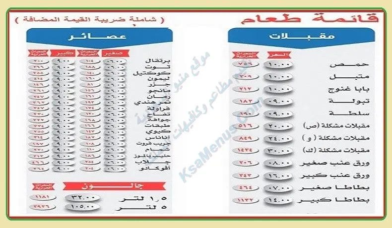 ما هي أسعار منيو ماما نورة طريق الملك عبدالله؟