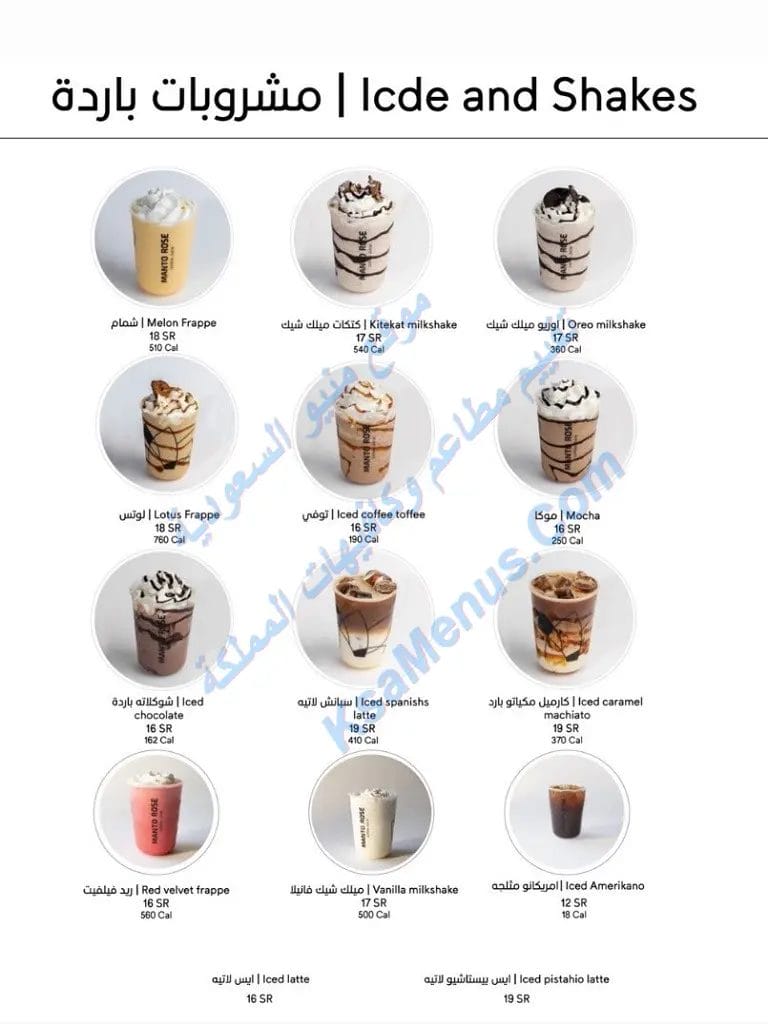 منيو مانتو روز كافيه مع الأسعار الجديدة كاملة بالصور