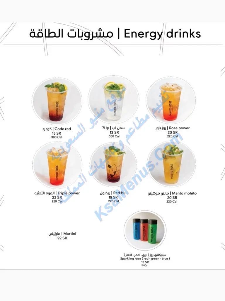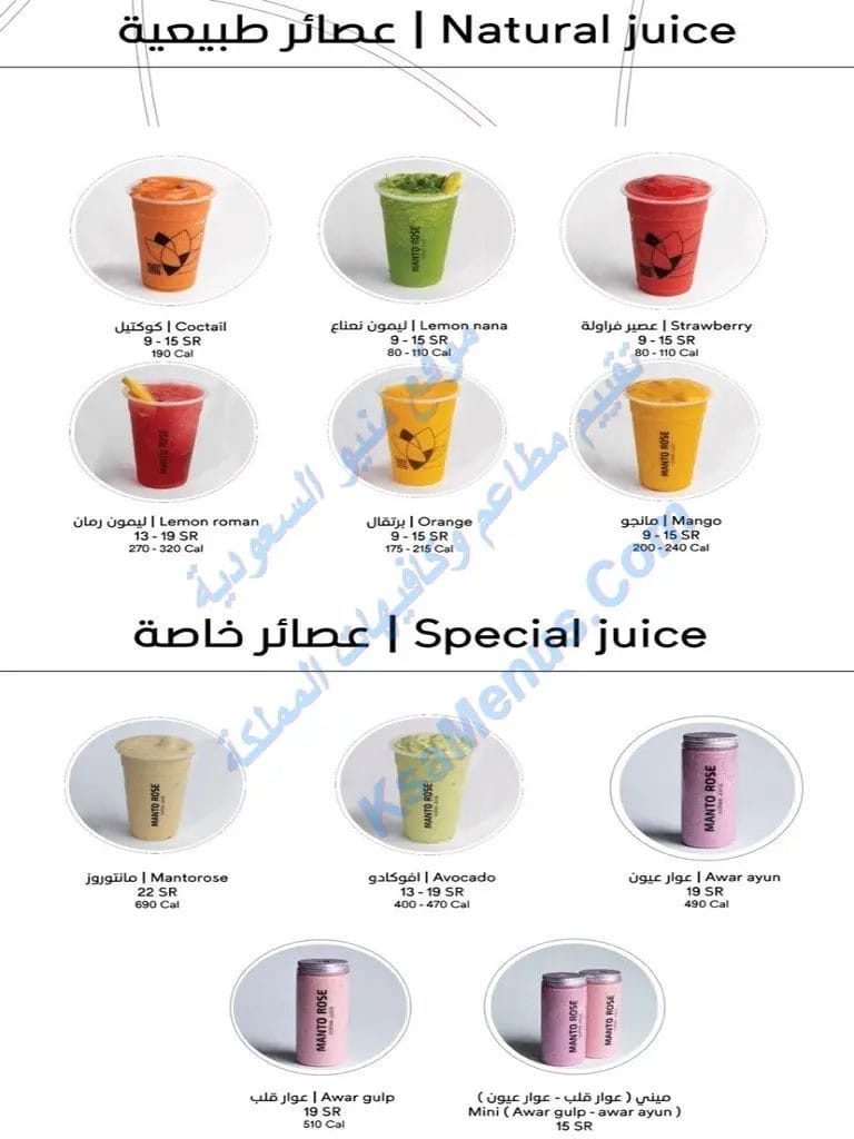منيو مانتو روز كافيه مانتو روز من افضل محلات العصير عندي ونظيف انصح بتجربته. الموهيتو الأزرق حقهم يفوز أما مشروبات الطاقات والعصيرات الطبيعية في القلب انصح فيه. يمكن التواصل مع الكوفي عبر حسابات التواصل الاجتماعي مثل انستقرام. مانتو روز كوفي مكان جميل خدمة واستقبال ممتاز وأجواء وأسعار طيبة.