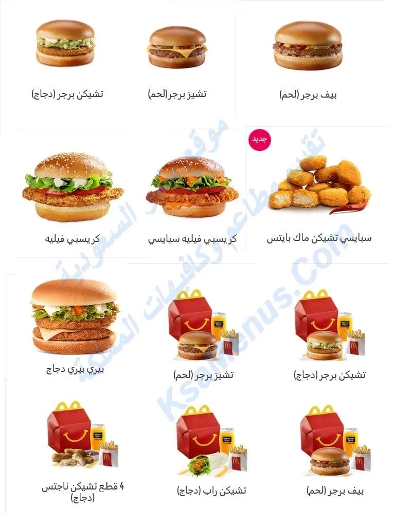 ماكدونالدز منيو من افضل سلاسل مطاعم البرجر في المملكة. برجر لحم بيج تستي مشروم او عادي. برجر دجاج جرند ماك تشيكن سبايسي ولا يفوتكم البطاطس ووجبة الأطفال. قائمة منيو ماك كافيه أو مطعم متنوعة بصورة كبيرة بالإضافة إلي أنواع البرجر تجد وجبات فطور ماكدونالدز خفيفة وشهية. يوفر ماكدونالدز توصيل كذلك خدمة سيارات سريعة ومميزة.