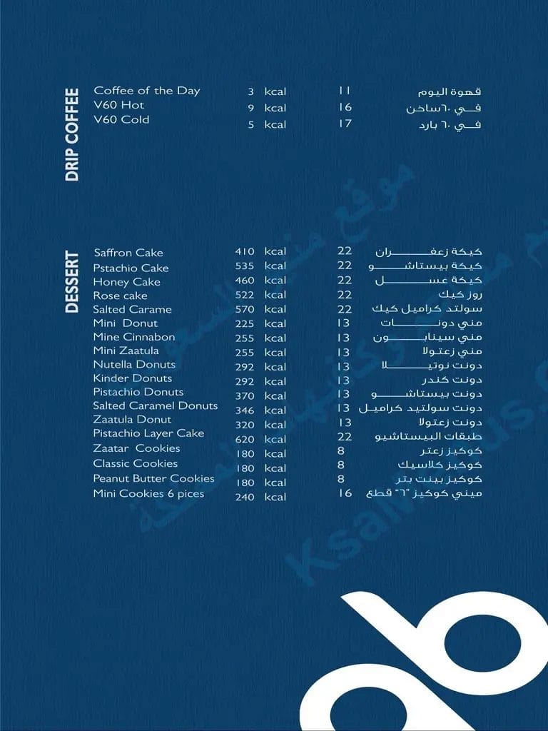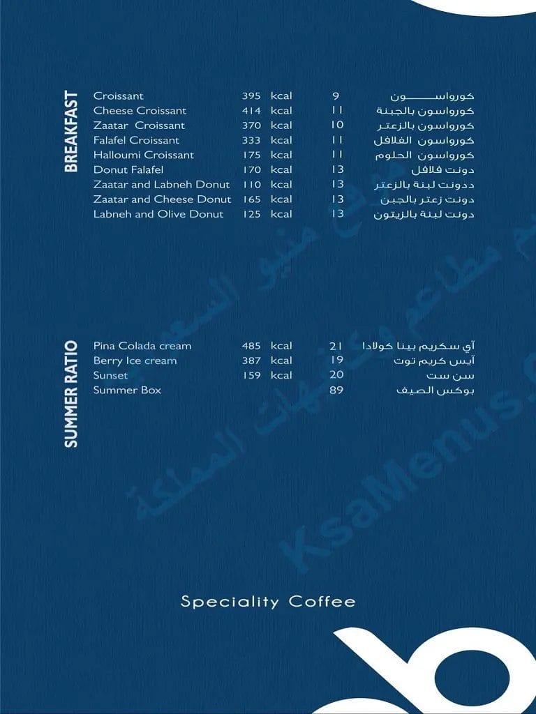 - المنيو: مشروبات ساخنة – مشروبات باردة – وجبات خفيفة.