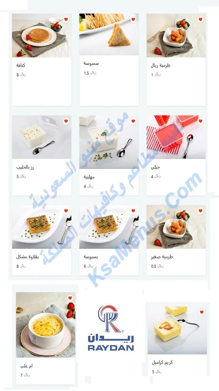 منيو مطعم ريدان جدة