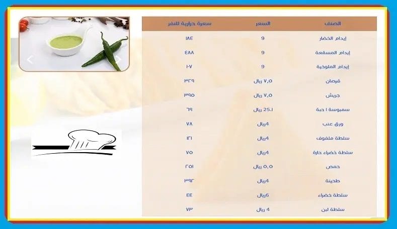 - سلطة حارة بسعر 4 ريال سعودي.
