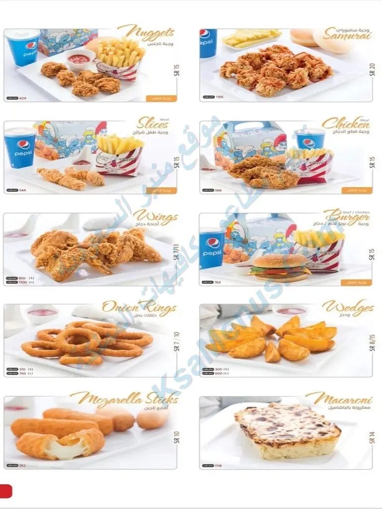 - سعر وجبة ساموراي هو 21 ريال سعودي. عدد 8 قطع دجاج مع بطاطس و بيبسي او ماء او عصير.